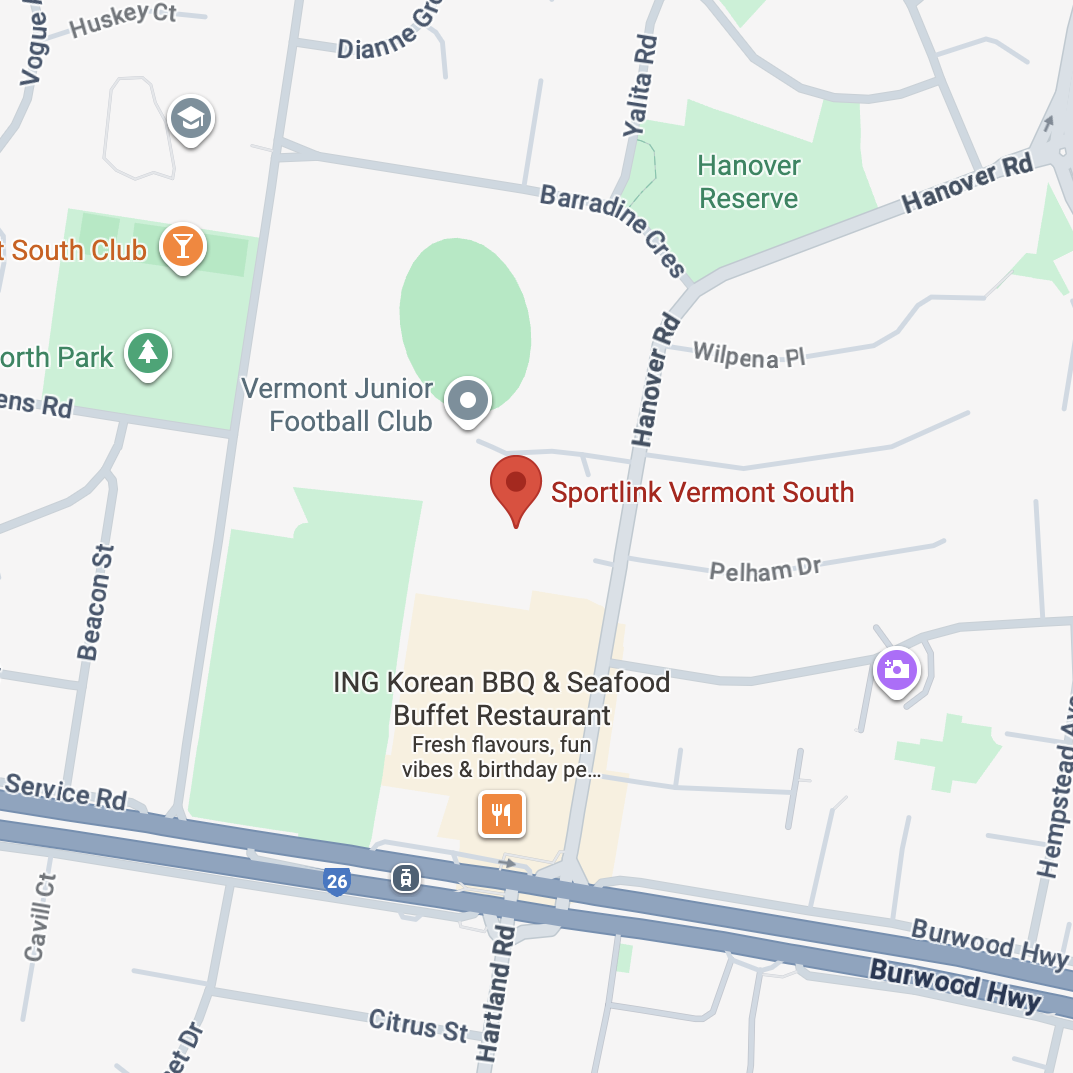All games are held at Sportlink Vermont South, 2 Hanover Rd, Vermont South VIC 3133.